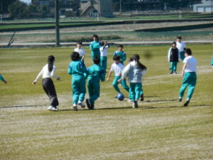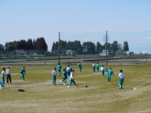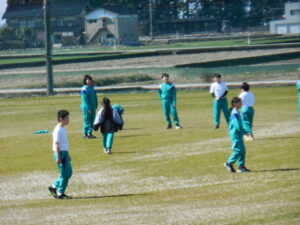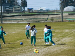 雪もすっかりとけ、体育はグラウンドでサッカーです。6年生は最後の体育の時間。4・5年生VS6年生でサッカーの試合をしました。6年担任の坂藤先生も入って、久しぶりのグラウンドで気持ちよくゲームをしました。