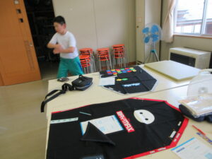 会場となる体育館の紅白幕も張り終わりました。校務助手の上野さんと外国語専科の廣田先生のご協力でぴんぴんにきれいに設置していただきました。着々と準備が進んでいます。