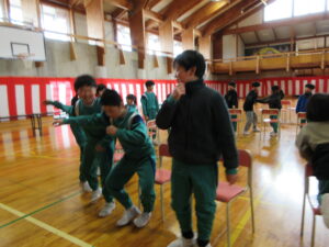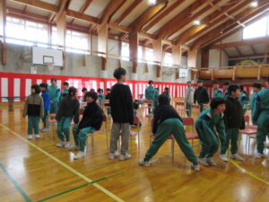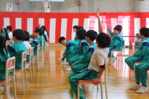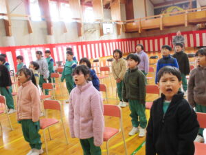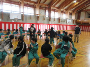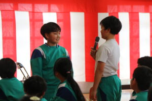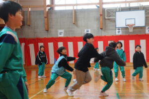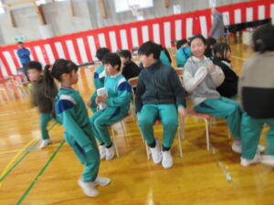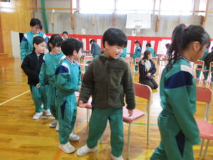 6年生主催で、いす取りゲームと氷鬼をしました。全校で楽しみ、6年生との最後の思い出を作ることができました。最後の振り返りのインタビューでは、10人以上挙手して発表しました。それほど思いがあったのでしょう。6年生ありがとう!