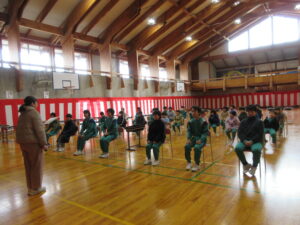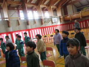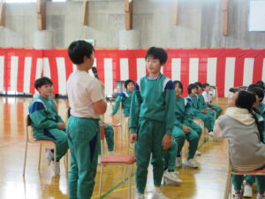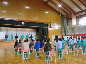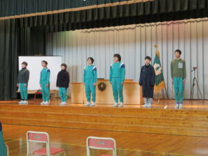 最後の卒業式練習です。予行練習を振り返って、ポイントを絞って練習しました。お別れの言葉と歌の練習をしました。自分のせりふをゆっくり大きな声で堂々と言えるようになりました。歌も歌詞を覚え、大きな歌声が響きます。16日(月)の本番はみんなで最高の力を出して成功させたいですね。