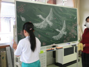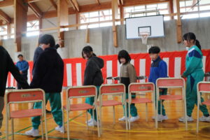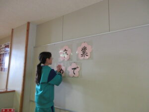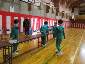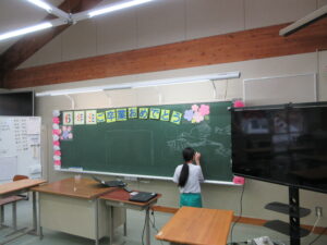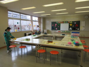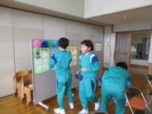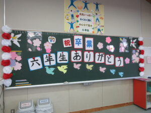16日(月)の卒業式の準備を行いました。今年は3年生も参加し、3~5年生で行いました。少数精鋭!体育館のパイプ椅子や鉢花並べ、掃除、各会場の飾りつけ等、みんな張り切って取り組みました。一人で担当していた場所もありますが、黙々と掃除をしたり飾りを付けたりしました。子供たちが一生懸命働く姿にいつも感動します。素敵な会場ができました。3・4・5年生ありがとう!