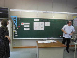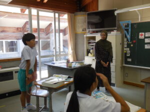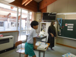 今日のミッションは「できること、できないことを伝えよう」SheとHeの使い分けでした。~さんは・・・ができる。~さんは・・・ができない。を英語で伝えます。She can~. He can’t~.をうまく使い分けて話すことができていました。ナディア先生の発音をよく聞いてまねています。