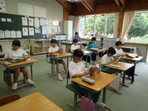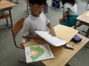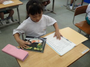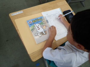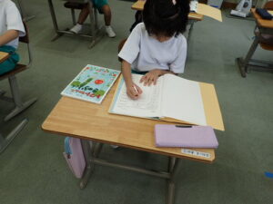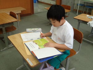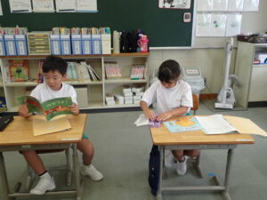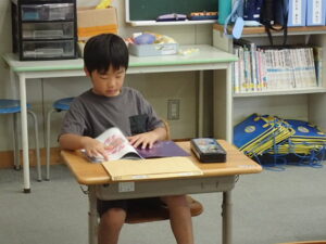 行事 読書タイム【9月25日】 2025年9月25日 ひばり野小 やはり・・・不気味な静けさの読書タイム?3・4年生教室はリーンリーンと虫の声しか聞こえませんでした。恐ろしいくらい読書に没頭しています。 1年生は、読書貯金カードに読んだ本を記録しています。「8万円たまったよ」8枚(80冊)読んだということです。うれしい貯金です。