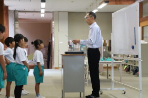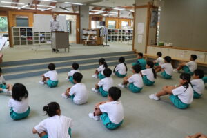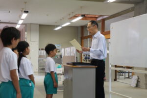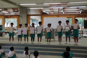 朝、授賞式が行われました。5分前には学習センターに集合し、静かに待っている子供たちに感心します。