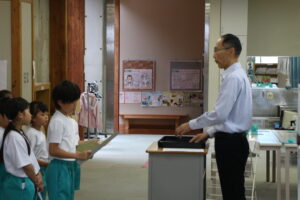 「令和7年度 歯・口の健康に関する図画・ポスターコンクール」入選の1年生。「令和7年度入善町・小・中学校作品展」優秀賞、令和7年度入善町小・中学校作品展発明とくふう部門」優秀賞を受賞した子供たちに校長先生から賞状が渡されました。全校のみんなで受賞をお祝いしました。