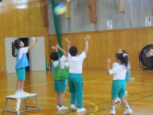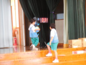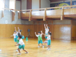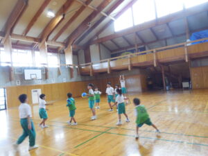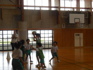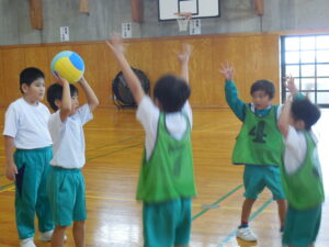 行事 ポートボール 1~3年【10月14日】 2025年10月14日 ひばり野小 管理G 体育の時間、持久走とポートボールを交互に学習しています。今日はポートボールでした。パス回しが上手になり、得点がたくさん入るようになりました。待っている間も得点や時間の係があります。しっかり働いています。