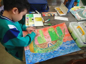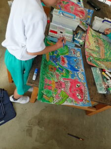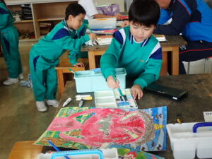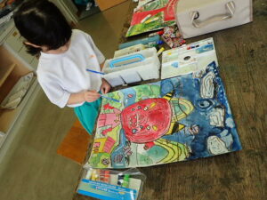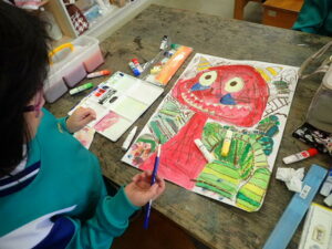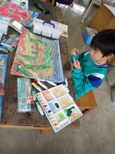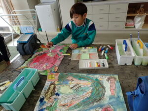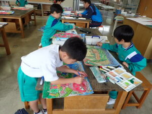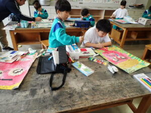 行事 バージョンアップ 1・2年図画工作科【10月28日】 2025年10月28日 ひばり野小 管理G お話の創造画がすごいことになっています。見るたびにダイナミック、かつ創造的!子供たちの発想や着色等の技能が素晴らしいです。また、どの子も一人で黙々と製作に取り組んでいます。感心します。