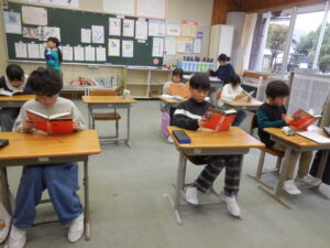 行事 読書の秋です【10月28日】 2025年10月28日 ひばり野小 管理G 朝の読書。いい感じです。静かです。 1・2年生 3・4年生 「はだしのゲン」トリオ 5年生 6年生 入善町電子図書館も人気です