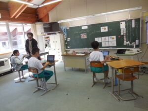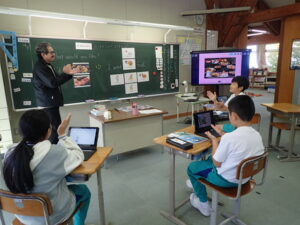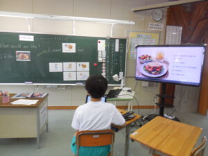 行事 ランチメニューを作ろう 5年生外国語【11月13日】 2025年11月13日 ひばり野小 管理G 廣田先生と楽しくご馳走を眺めています。画面に映された料理。自分の好きなランチメニューを取り出し、話す学習です。和食が好きです。餃子が好きです。中華料理が好きです・・・などなど。「お腹がすいてきた」納得です。