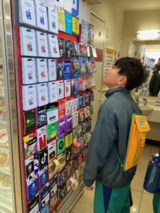 3年生が舟見のローソンに見学に行きました。延期となっていたので子供たちは待ち遠しかったですね。近くにあっても、話を聞いたり詳しく店内を見たりしたことはありません。「11人働いていて交代しとるんやって」「一番人気はからあげ」「夕方5時から6時が一番お客さんが多い」などなど初めて知ったことがたくさんあったようです。ローソンの皆さん、ご協力ありがとうございました。