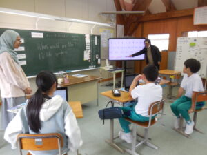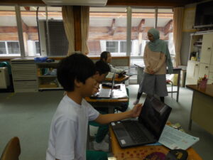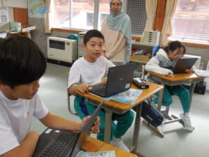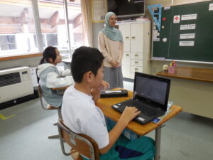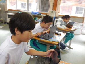 5年生の外国語、6年と同じくGoogle翻訳機能を使っていました。料理の注文の仕方で、値段を伝える学習です。数字を発音して正しい金額が出るか・・・?なかなか難しいようでした。でも、何度も繰り返し挑戦できるところがいいです。正しく表示されると大喜びでした。Google先生はやっぱり厳しい・・・。