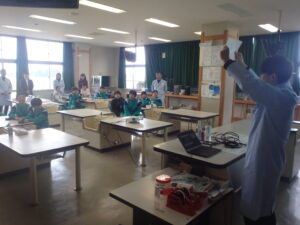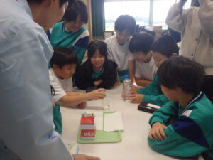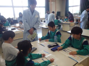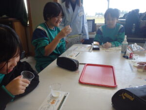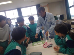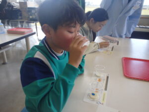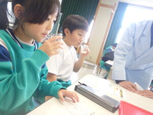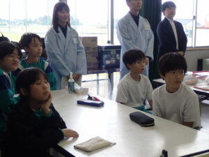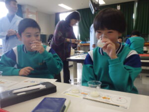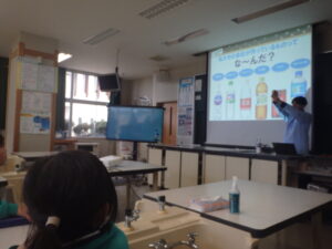 3~6年生を対象に、カルピス®こども乳酸菌研究所の出前授業が行われました。『カルピス』こども乳酸菌研究所」は、「カルピス」を通じて〝ワクワクと笑顔を未来へ届けたい〟という想いを、アサヒ飲料社員自らの行動で実現していく活動です。アサヒ飲料入善工場の社員の方々が講師となり“乳酸菌と発酵“をテーマに体験を通して乳酸菌のパワーや未来の食生活を学びました。明るくユーモラスな講師の先生方と楽しく学ぶことができました。