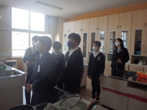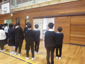 6年生が入善中学校を見学しました。1年生の英語と国語の授業を見学しました。「中学校の勉強は難しいんだな」「いつもは7人で勉強しているけど、30人教室にいっぱいおってすごいと思った」「行事が楽しそう」被服室や家庭科室をみてびっくり!調理室のあまりの広さとたくさんの調理器具に驚いたそうです。6年担任の坂藤先生も初めて入善中学校に入ったそうです。みんなドキドキわくわくでしたね。中学校への夢が膨らみました!入善中学校の先生方お世話になりました。ありがとうございました。