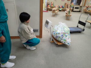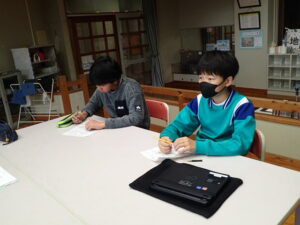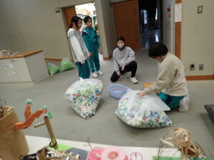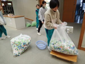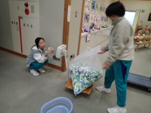 委員会活動の日です。今回は2学期の振り返りをしました。自分の活動を振り返ってみんなで発表していました。「なんでも委員会」は、ペットボトルキャップの数を数えていました。たくさんのキャップを体重計に載せます。100個当たりの重さを測って、比例の学習を活かして個数を出しました。何と!10500個ありました。回収は今学期で終了します。たくさん協力してくださってありがとうございました。