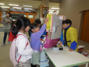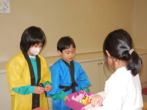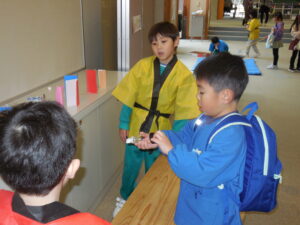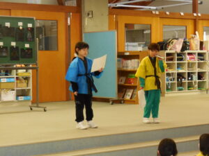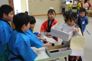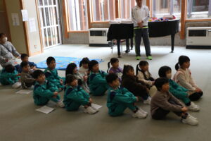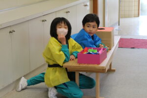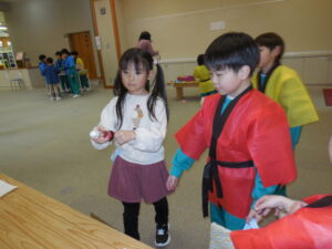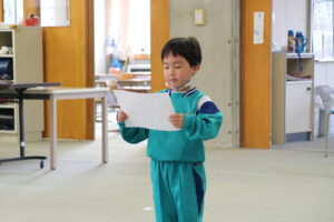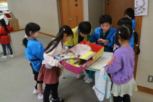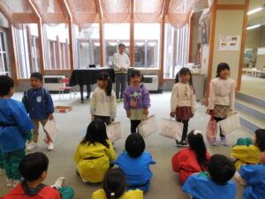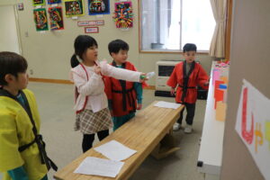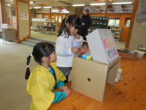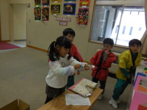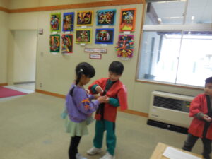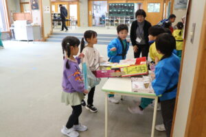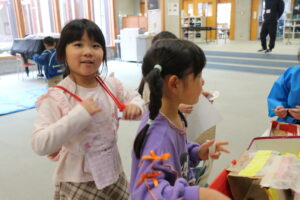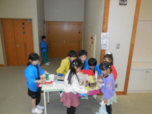 1・2年生が生活科の学習として、来年度入学児を招待してお祭りを開催しました。司会進行やお祭りなど、ずっと前から準備をしてきました。年長児さんを前に、堂々と説明したり、優しくお世話をしたりしていました。お祭りコーナーでは、自分たちのお店を元気に宣伝し、ゲームのやり方をやさしく説明しました。年長児さんたちにたっぷり楽しんでもらい、素敵なお兄さんお姉さんぶりでした。