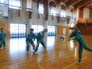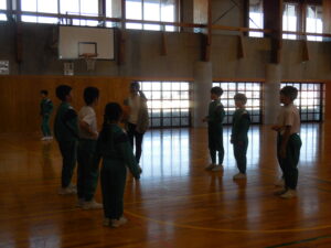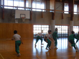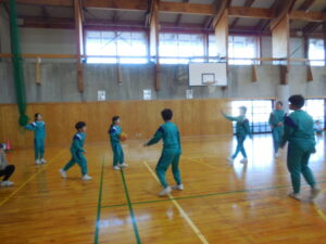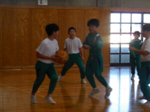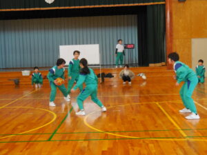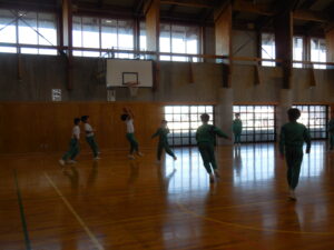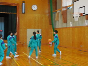 バスケットボール、盛り上がっています。4年生は、上級生からパスをもらってしっかりプレーを楽しんでいます。上級生も下級生に対する気配りが素晴らしく、チームプレーを大切にしてパス回しや声かけを行っていました。バスケットボールが楽しい!とみんなが味わえる雰囲気があります。みんなの応援の声が響く体育館です。