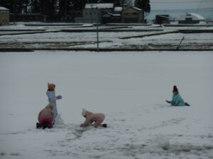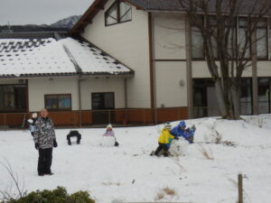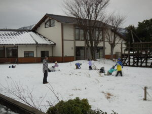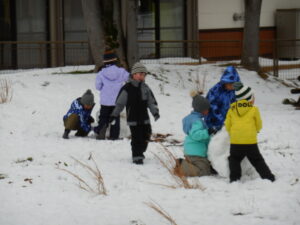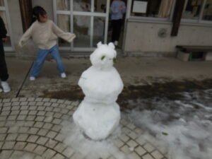朝から大荷物を持って登校してきた1・2年生。そり、スキーウエア、雪遊び用にばっちり準備してきました。しかし・・・、思ったより積雪はなく、ちょっぴり残念?それでも1時間目からアスレチック広場やグラウンドで夢中になって雪遊びを楽しみました。かわいい雪だるまがたくさんできました。