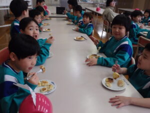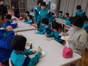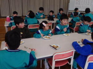 1年生と6年生がさつまいも🍠パーティーを行いました。春に一緒に苗を植え、秋に一緒に収穫した大切なさつまいも。6年生が企画して、さつまいもを味わうだけでなく、ゲームなどのお楽しみもありました。さつまいもは「いもパンケーキ」に調理しました。工夫していますね。それをみんなで作り、食べ、そしてお楽しみ会です。さすが6年生、司会進行も上手にこなし、1年生はとても喜んでいました。おいしくうれしいパーティーでした。🍠