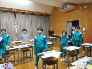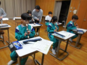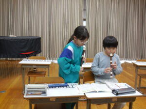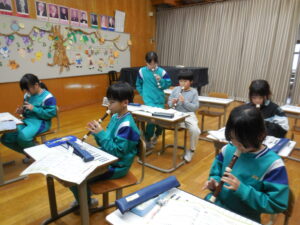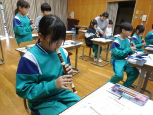 3・4年生の音楽。同じ曲を学習中。♪パフという軽快な曲です。♪にすらすらと階名を書いている子供たちに感心しました。歌を歌った後、リコーダー演奏に挑戦。これもまたそれなりに吹いており、初めてとは思えません。特に、3年生はかなりの腕前です。夏の七夕パレードで鍛えられた成果ですね。