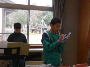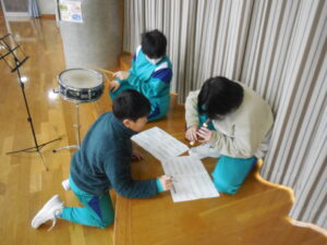 「銀河鉄道999」の合奏練習に取り組んでいます。7名でそれぞれ楽器を分担して自己練習です。折を見て友達と合わせながら熱心に練習しています。学習参観や送る会で披露する予定だそうです。それぞれ楽譜が違うので、責任重大です。がんばっています。