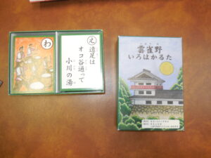 「雲雀野いろはかるた」は、舟見郷土史研究会・舟見ふるさと学習会の方々が、地元の雲雀野台地の歴史、自然、文化、言い伝え等を読み札と絵札にまとめたものです。ひばり野小学校にもこのかるたがあり、子供たちは学級や縦割り班で楽しんでいます。そのかるたに、新たに7枚の絵札・読み札が作られました。徳光孝司さん、小森裕さん、沢田千津子さん3名の方が来校され、寄贈していただきました。ひばり野小学校伝統の鼓笛隊パレードも入っており大変うれしいことです。絵札は徳光さんの直筆だそうです。大切に使わせていただきます。このかるたを通して、ふるさとへの思い愛情もより豊かに育っていくことと思います。