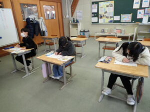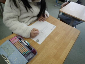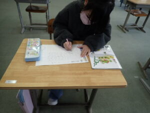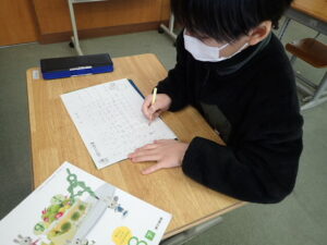 算数の時間の初めに、3年生が毎回取り組んでいます。すっかり習慣化して、記録もぐんぐん縮んでいます。しかし、もう縮むのも限界!?1分30秒以内に終えるようになりました。タイマーを見るたびに「くそー」「おしかった」と言っています。100マス計算のおかげで計算力も付いて自信も付きました。頑張ってきた証拠です。