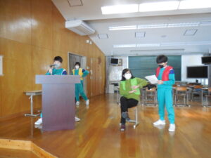 委員会活動の日でした。給食保健委員会は、延期になってい給食週間のイベントの準備をしました。朝食アンケートの結果を受けて、朝食の大切さを伝える寸劇の練習をしました。動きや声の抑揚もよく考えられていて本番が期待されます。