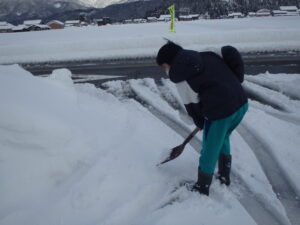 なんでも委員会は、除雪の仕事をしました。たっぷり降り積もった雪。スコップで雪を切り崩し、先生がスノーダンプで運びました。黙々と一生懸命働きました。ありがとう!