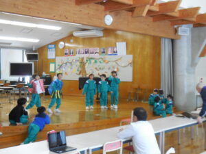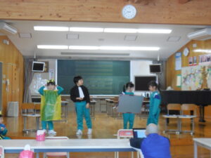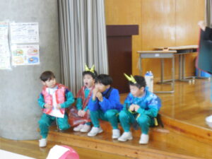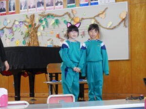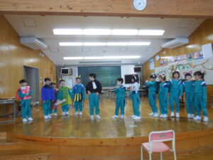 行事 劇練習が始まりました 1・2年生【2月12日】 2026年2月12日 ひばり野小 管理G 1・2年生の「ももたろう」の劇練習が始まりました。ランチルームのステージで、かわいい衣装を身に付けて張り切っています。清水先生・後藤先生・目澤先生3名の先生が叱咤激励?してがんばっています。まだまだ…これからですね。