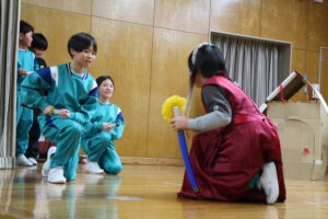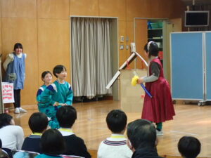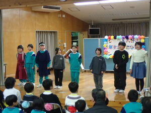 行事 6年生を送る会③【2月20日】 2026年2月20日 ひばり野小 管理G 3・4年生「とし雪ひめ~美しいのはだあれ?~」 役者ぞろいの3・4年生。役になり切ったセリフ回しや動きは最高。会場が爆笑?の渦でした。