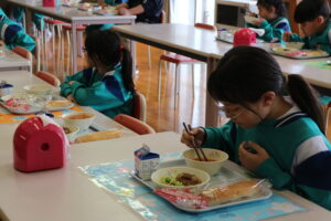 バースデー給食の日でした。そして、みんなが楽しみにしていた「リクエスト給食」の日でした。6年生が考えたメニューから選ばれたのは「神うま給食V2」でした。コッペパン、ミネストローネ、ハンバーグ、コールスローサラダ、米粉のカップケーキ、牛乳。豪華版した。そして2月3月生まれの誕生者をお祝いしました。メッセージカードの紹介もあり、うれしい給食時間となりました。
