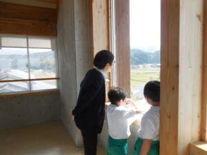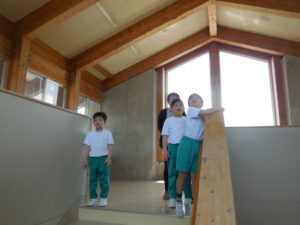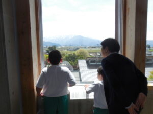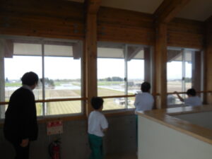 3年生から始まる社会科の学習1回目。石原先生が担当されます。今日は、東西南北を学習しつつ、学校の周りがどのようになっているかを見ました。ひばり野小学校自慢の展望塔に行き、ひばり野台地を眺めました。自分の家を探したり、舟見城を見たり・・・。天気も良く素晴らしい景色です。