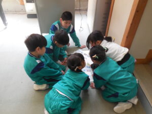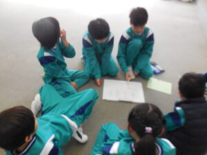 4月30日の遠足に向けて、準備が進んでいます。1~4年生は、縦割りグループになって、魚津市ミラージュランドでの活動を話し合っていました。お化け屋敷や観覧車など、どれを利用するかを決めました。4年生が話合いをリードし、みんなの意見を上手に聞いて進めていました。晴れてほしい!