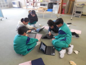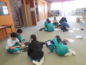 5・6年生は、タブレットで富山駅周辺や富山市の地図を見ながら自由行動の際の訪問場所を決めていました。自分で切符を買って電車に乗り、お昼ご飯も自分でお金を出します。ワクワクドキドキ。